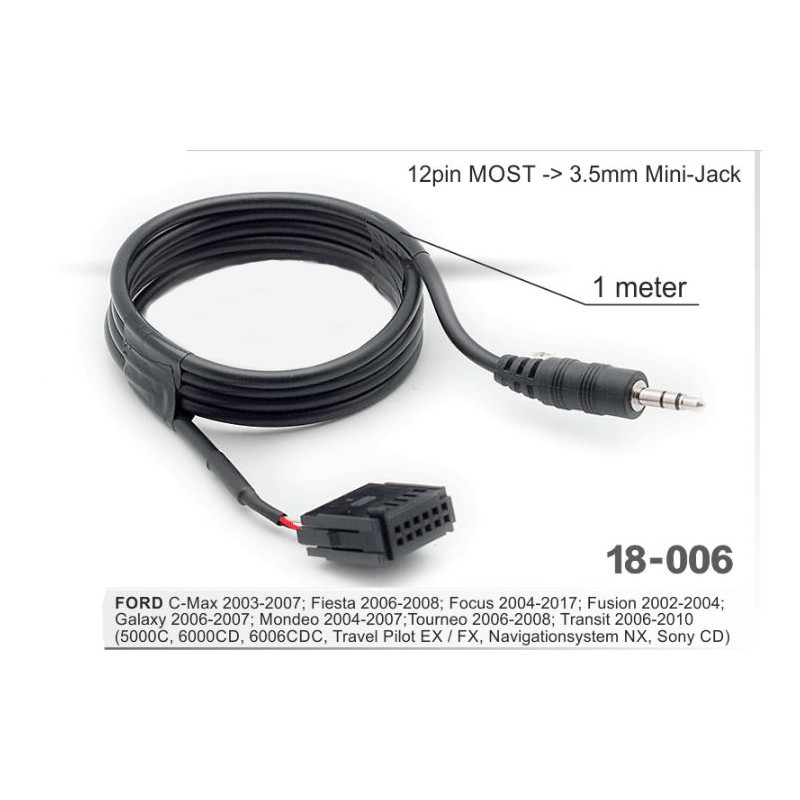 Кабель артикул 18-006 специально разработан для популярных моделей штатных магнитол Ford: 5000C, 6000CD, 6006CDC, Travel Pilot EX/FX и Navigationsystem NX. Если в вашем авто установлено одно из этих устройств, вы сможете легко подключить любой смартфон или MP3-плеер для прослушивания музыки и подкастов через аудиосистему автомобиля. Это особенно актуально для поездок по Тюменьу и области.